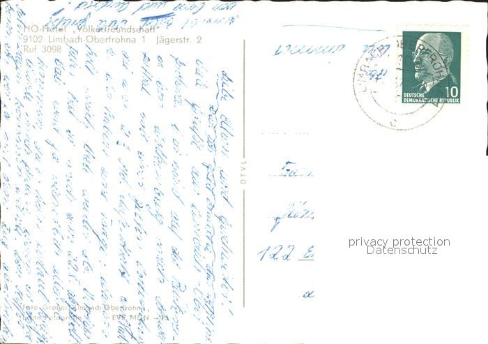 72331881 alte Postkarte Oberfrohna Hotel Voelkerfreundschaft Halle postalisch gelaufen Erhaltung siehe scans KatCode: 11110014173140