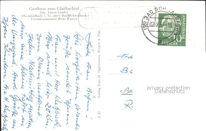 31727543 alte Postkarte Obergladbach Gasthaus zum Gladbachtal postalisch gelaufen Erhaltung siehe scans KatCode: 11110006439014