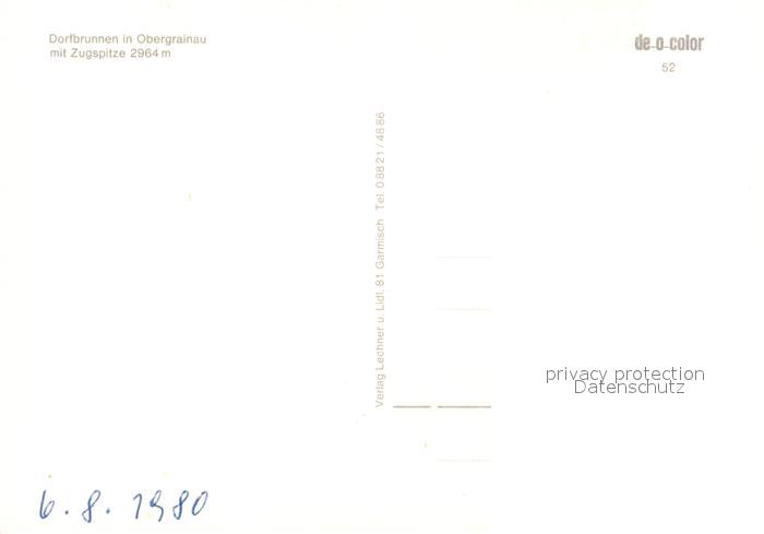 73269270 Obergrainau Dorfbrunnen mit Zugspitze Wettersteingebirge postalisch nicht gelaufen Erhaltung siehe scans [FriedD77] KatCode: 11110009180118