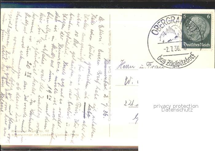 72129299 alte Postkarte Obergrainau Hochalm gegen Alpspitze postalisch gelaufen Erhaltung siehe scans KatCode: 11110009180118