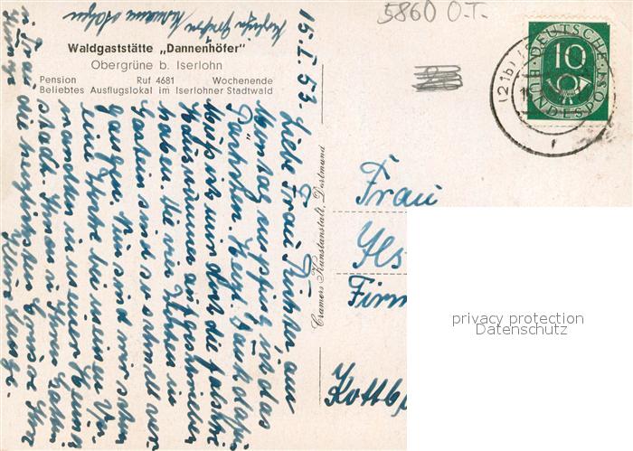 73710347 alte Postkarte Obergruene Waldgaststaette Dannenhoefer Innen Speisesaal postalisch gelaufen Erhaltung siehe scans [LiesaD40] KatCode: 11110005962024