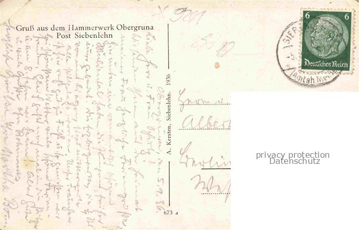 74024807 alte Postkarte Obergruna Siebenlehn Grossschirma Sachsen Hammerwerk Panorama postalisch gelaufen Erhaltung siehe scans [WerneD78] KatCode: 11110014177180