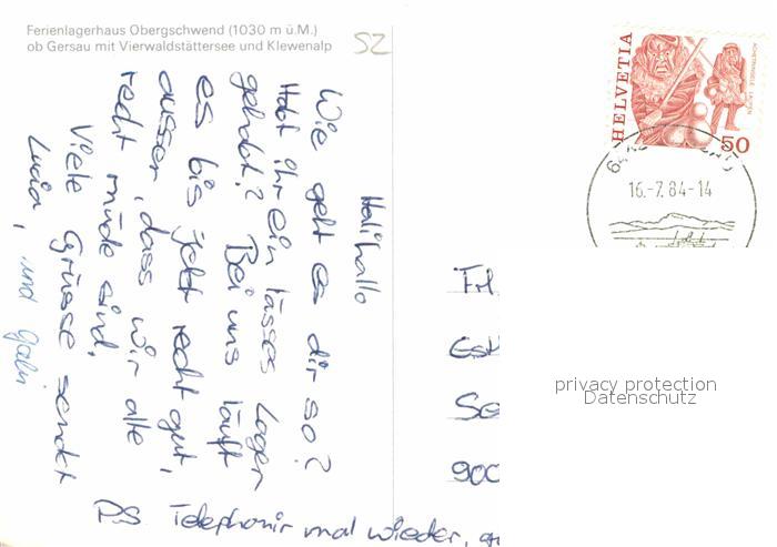 72770412 alte Postkarte Obergschwend Ferienlagerhaus mit Vierwaldstaettersee und Klewenalp postalisch gelaufen Erhaltung siehe scans [WerneD78] KatCode: 11110009780123