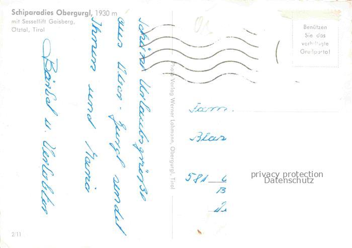 74024684 alte Postkarte Obergurgl Ober-Gurgl Soelden oetztal Imst Tirol AT Schiparadies in den oetztaler Alpen mit Sessellift Gaisberg postalisch gelaufen Erhaltung siehe scans [FriedD77] KatCode: 11390
