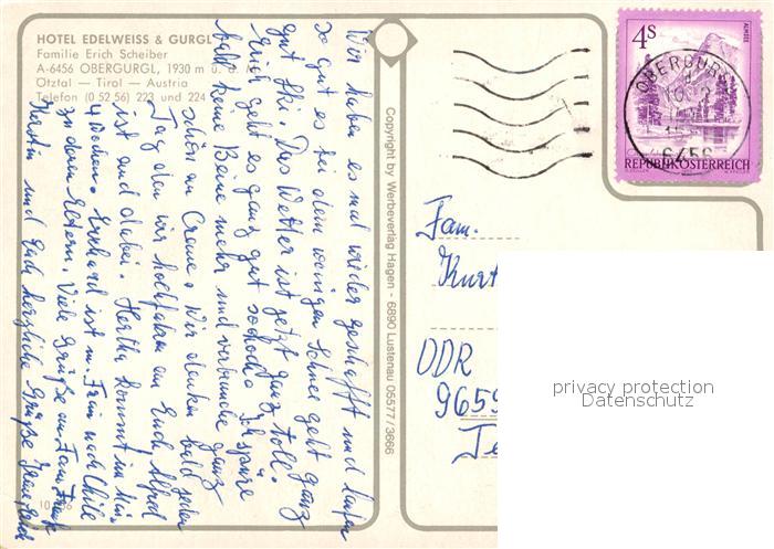 73336791 alte Postkarte Obergurgl Soelden Tirol Hotel Edelweiss und Gurgl Wellnessbereich Gaststube postalisch gelaufen Erhaltung siehe scans [WerneD78] KatCode: 11390