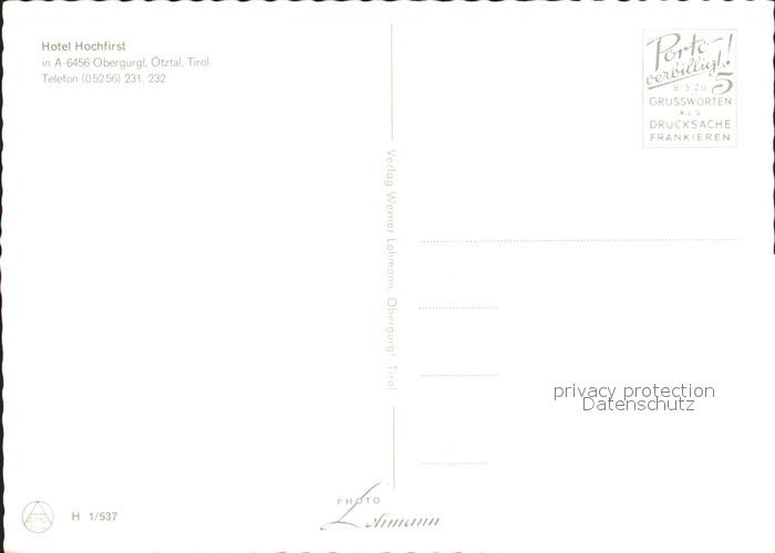 72289343 Obergurgl Soelden Tirol Hotel Hochfirst postalisch nicht gelaufen Erhaltung siehe scans KatCode: 11390