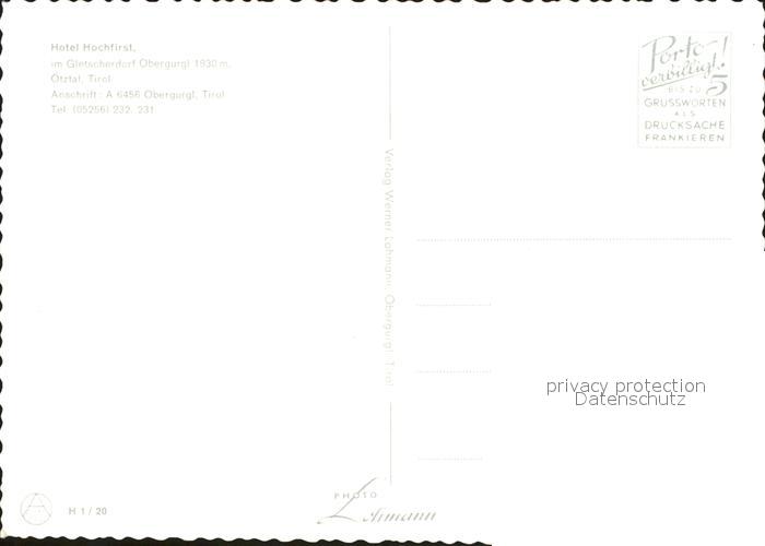 71915556 Obergurgl Soelden Tirol Hotel Hochfirst Klause postalisch nicht gelaufen Erhaltung siehe scans KatCode: 11390