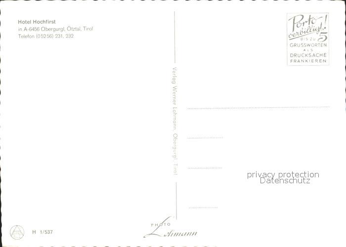 72289381 Obergurgl Soelden Tirol Hotel Hochfirst postalisch nicht gelaufen Erhaltung siehe scans KatCode: 11390