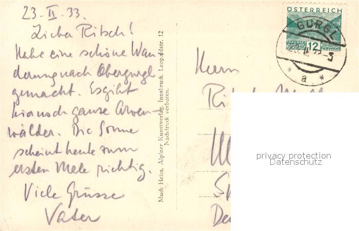 43076542 alte Postkarte Obergurgl Soelden Tirol Kirche postalisch gelaufen Erhaltung siehe scans [WerneD78] KatCode: 11390