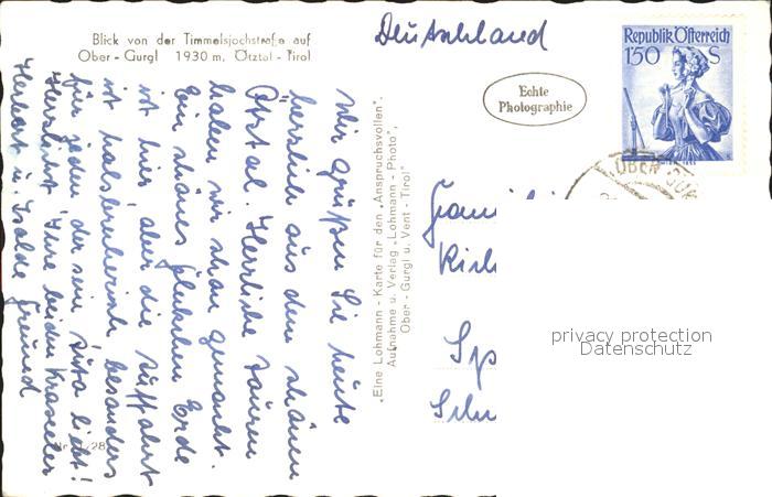 72375428 alte Postkarte Obergurgl Soelden Tirol Panorama Blick von der Timmelsjochstrasse Alpen postalisch gelaufen Erhaltung siehe scans KatCode: 11390