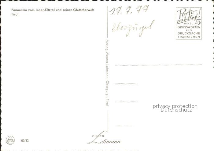 72499876 Obergurgl Soelden Tirol Panorama vom Inner-oetztal postalisch nicht gelaufen Erhaltung siehe scans KatCode: 11390
