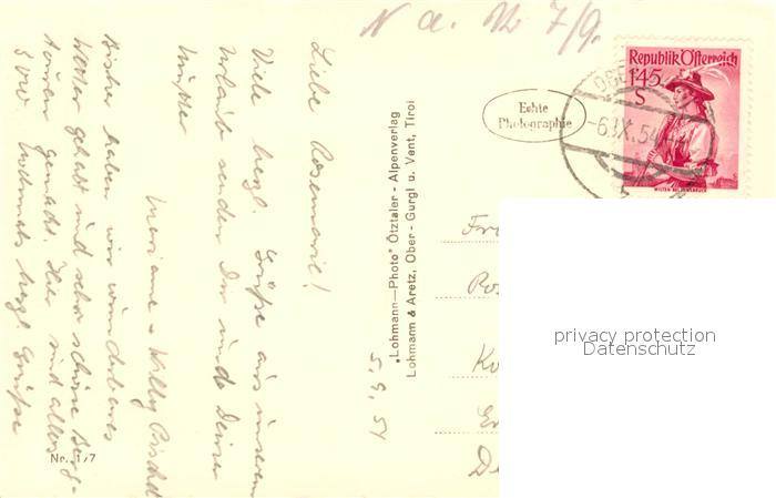 73256636 alte Postkarte Obergurgl Soelden Tirol Schalfkogl postalisch gelaufen Erhaltung siehe scans [NatalD47] KatCode: 11390
