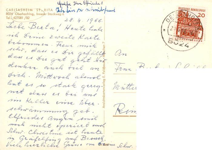 73882985 alte Postkarte Oberhaching St Rita Heim Hauskapelle Gastraum Zimmer postalisch gelaufen Erhaltung siehe scans [WerneD78] KatCode: 11110009184134