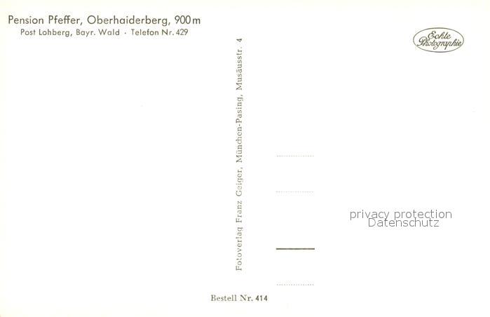 73645662 Oberhaiderberg Pension Pfeffer mit Blick zum Osser Bayerischer Wald postalisch nicht gelaufen Erhaltung siehe scans [FriedD77] KatCode: 11110009372178