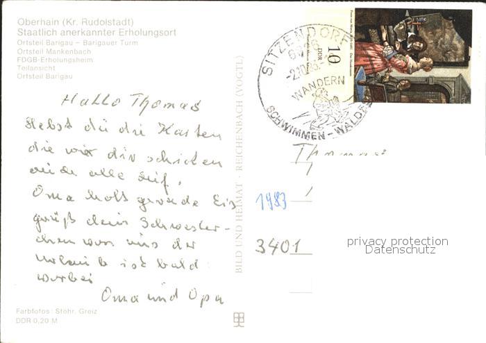 72369208 alte Postkarte Oberhain Barigauer Turm Mankenbach postalisch gelaufen Erhaltung siehe scans KatCode: 11110016073063