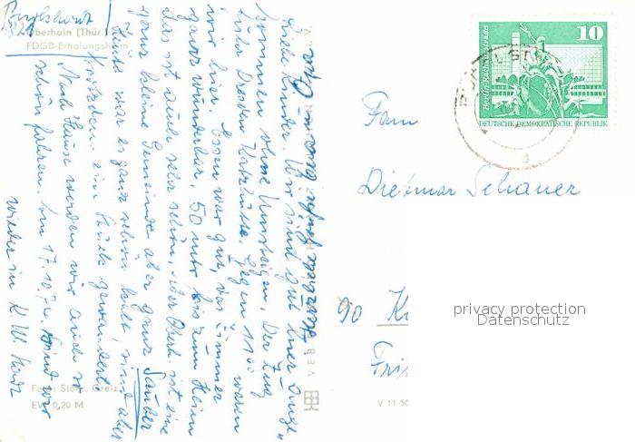 72704408 alte Postkarte Oberhain FDGB Erholungsheim postalisch gelaufen Erhaltung siehe scans [FriedD77] KatCode: 11110016073063