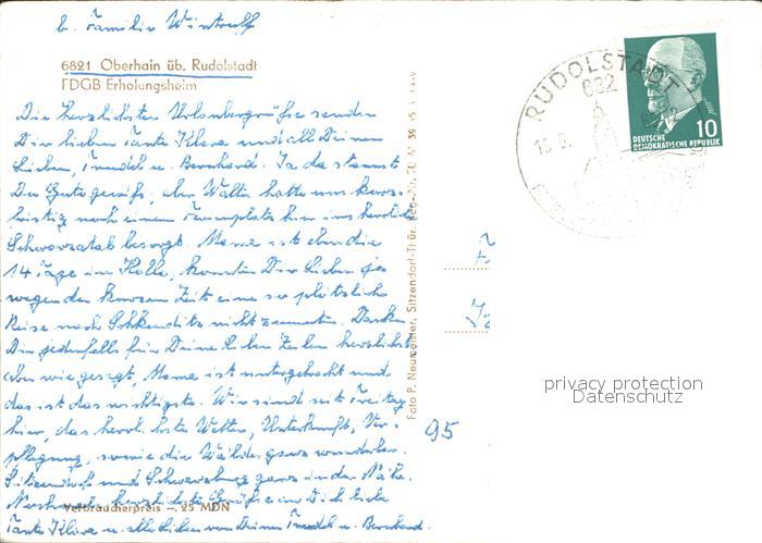 72047838 alte Postkarte Oberhain FDGB-Erholungsheim postalisch gelaufen Erhaltung siehe scans KatCode: 11110016073063