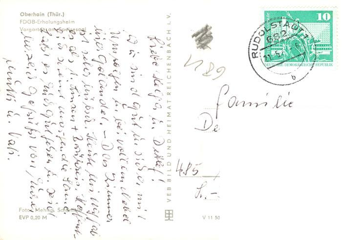 73887311 alte Postkarte Oberhain FDGB Erholungsheim Vorgarten am Speisesaal postalisch gelaufen Erhaltung siehe scans [FriedD77] KatCode: 11110016073063