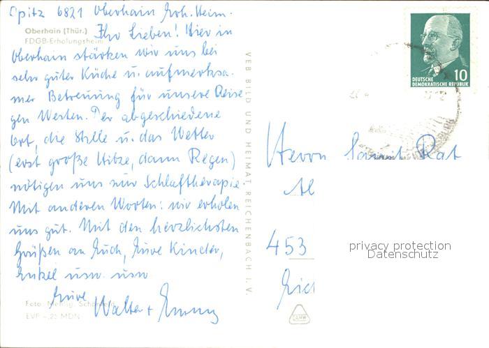 72114555 alte Postkarte Oberhain FDGB Heim postalisch gelaufen KatCode: 11110016073063