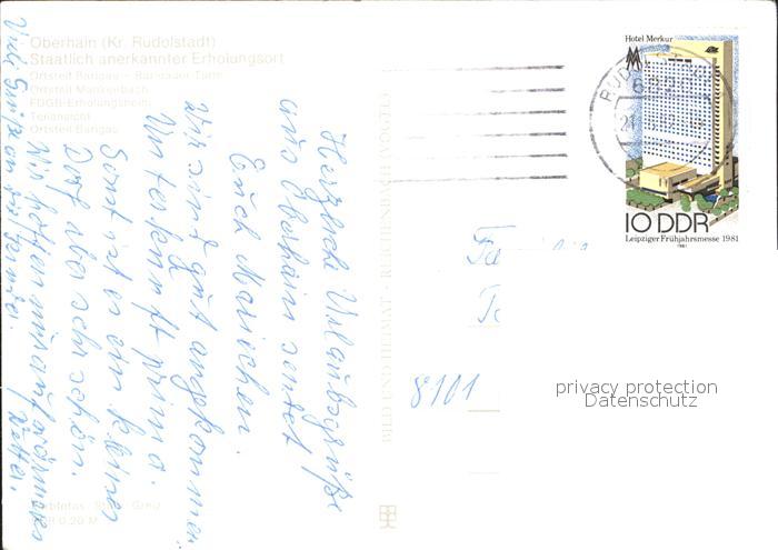 72372250 alte Postkarte Oberhain OT Barigau Turm Mankenbach FDGB Erholungsheim postalisch gelaufen Erhaltung siehe scans KatCode: 11110016073063
