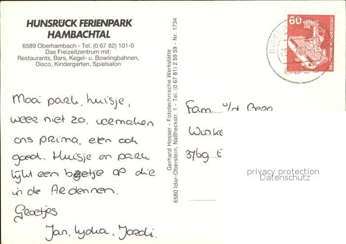 72304974 alte Postkarte Oberhambach Birkenfeld Hunsrueck Ferienpark Hambachtal postalisch gelaufen Erhaltung siehe scans KatCode: 11110007134063