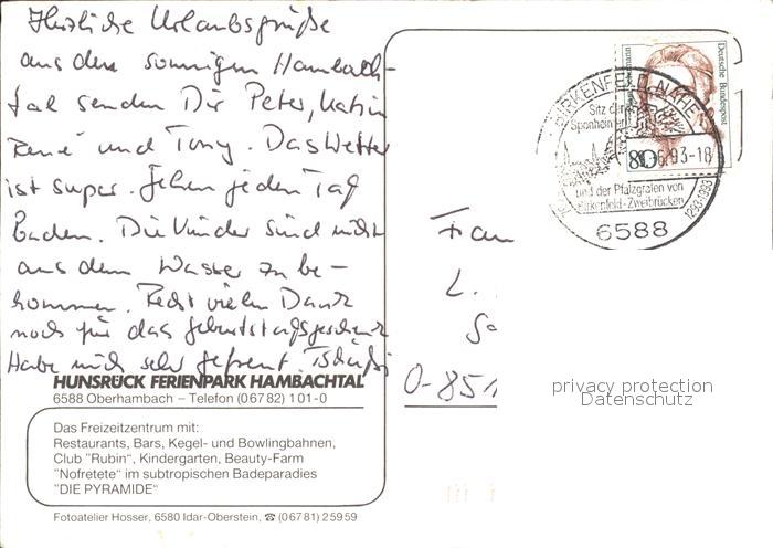 72017123 alte Postkarte Oberhambach Birkenfeld Hunsrueck Ferienpark Hambachtal postalisch gelaufen Erhaltung siehe scans KatCode: 11110007134063