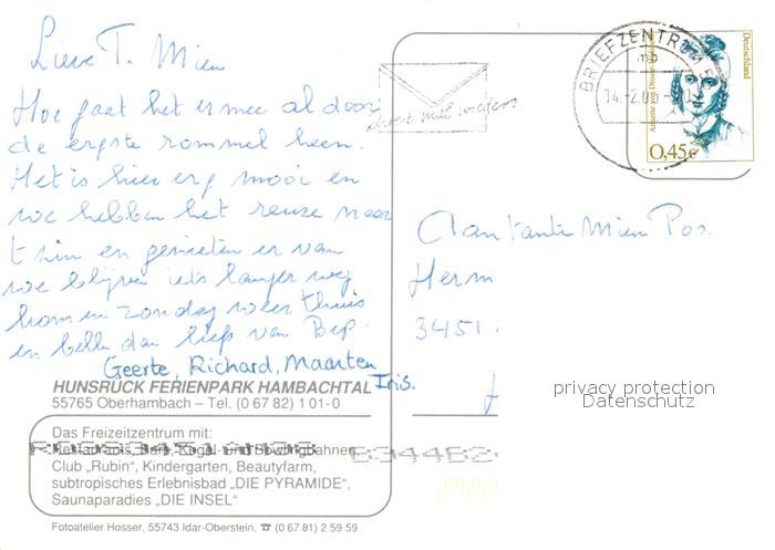 73203259 alte Postkarte Oberhambach Birkenfeld Hunsrueck Ferienpark Hambachtal Fliegeraufnahme postalisch gelaufen Erhaltung siehe scans [PaolaD17] KatCode: 11110007134063