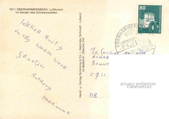 72872124 alte Postkarte Oberharmersbach postalisch gelaufen Erhaltung siehe scans [LiesaD40] KatCode: 11110008317088