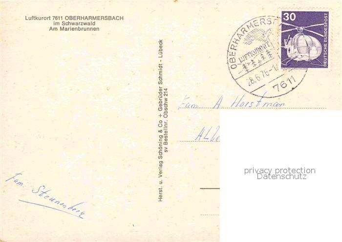 72773887 alte Postkarte Oberharmersbach Am Marienbrunnen postalisch gelaufen Erhaltung siehe scans [WerneD78] KatCode: 11110008317088