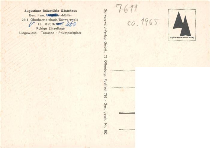 73912363 Oberharmersbach Augustiner Braeustueble Gaestehaus Terrasse postalisch nicht gelaufen Erhaltung siehe scans [FriedD77] KatCode: 11110008317088