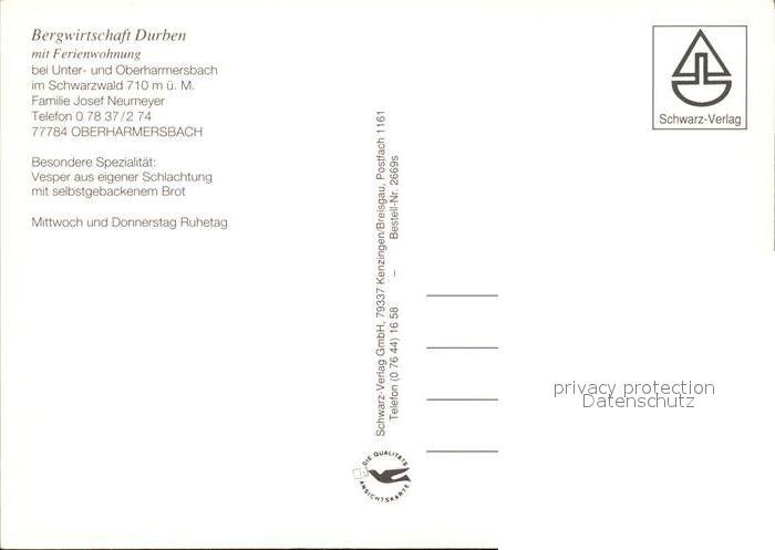 72419076 Oberharmersbach Bergwirtschaft Durben Panorama Schwarzwald postalisch nicht gelaufen Erhaltung siehe scans KatCode: 11110008317088
