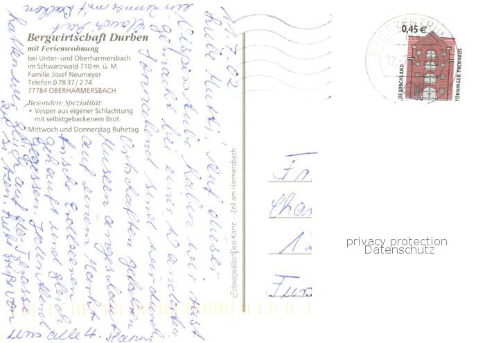 73859014 Oberharmersbach Bergwirtschaft Durben Panorama postalisch nicht gelaufen Erhaltung siehe scans [WerneD78] KatCode: 11110008317088