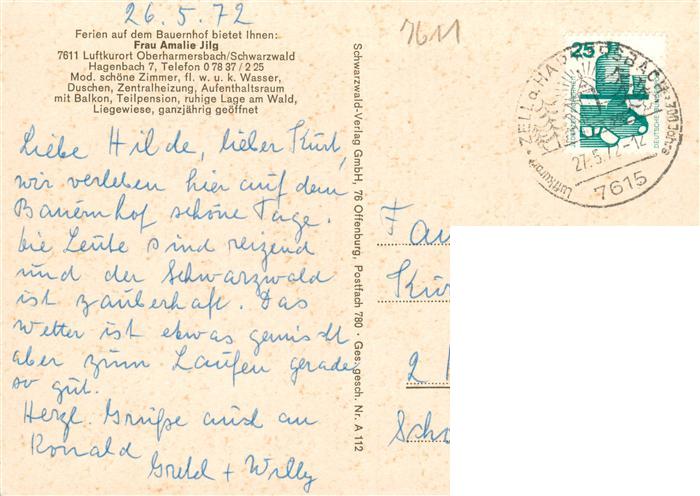 73928941 alte Postkarte Oberharmersbach Ferien auf dem Bauernhof Amalie Jilg postalisch gelaufen Erhaltung siehe scans [FriedD77] KatCode: 11110008317088