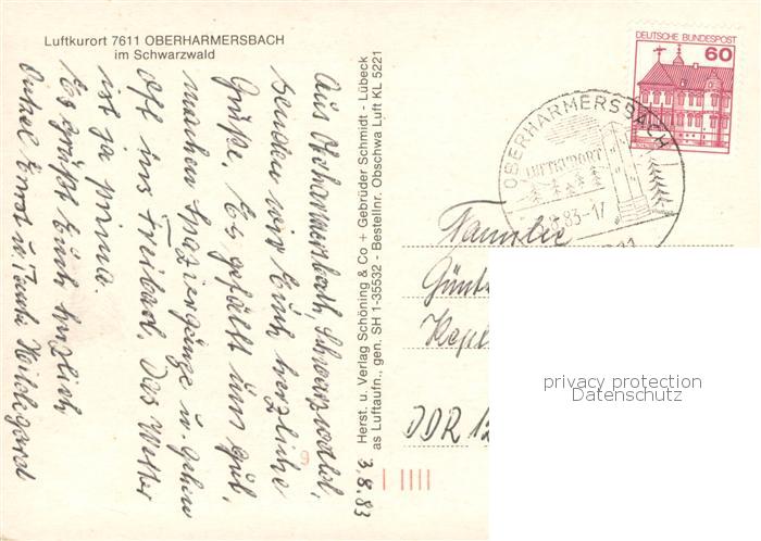 73761085 alte Postkarte Oberharmersbach Fliegeraufnahme postalisch gelaufen Erhaltung siehe scans [WerneD78] KatCode: 11110008317088