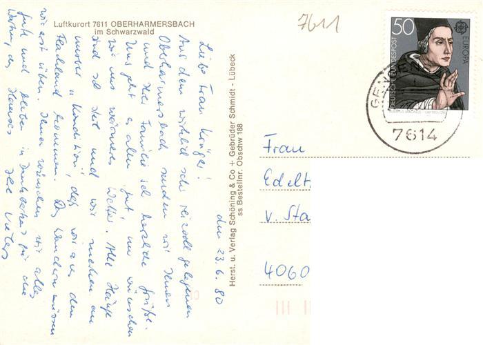 73928978 alte Postkarte Oberharmersbach Fliegeraufnahme postalisch gelaufen Erhaltung siehe scans [FriedD77] KatCode: 11110008317088