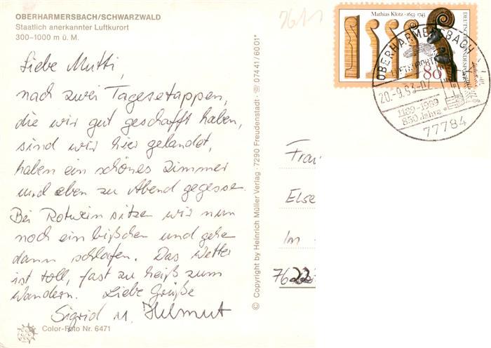 73934970 alte Postkarte Oberharmersbach Fliegeraufnahme Trachtengruppe postalisch gelaufen Erhaltung siehe scans [WerneD78] KatCode: 11110008317088