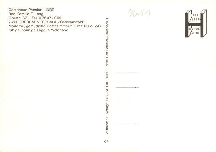 73928002 Oberharmersbach Gaestehaus Pension Linde postalisch nicht gelaufen Erhaltung siehe scans [FriedD77] KatCode: 11110008317088