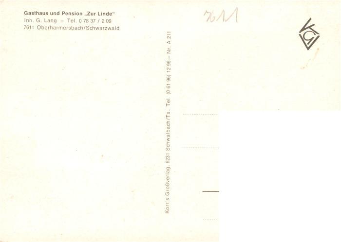 73928377 Oberharmersbach Gasthaus Pension Zur Linde Gastraum Lindenbaum postalisch nicht gelaufen Erhaltung siehe scans [FriedD77] KatCode: 11110008317088