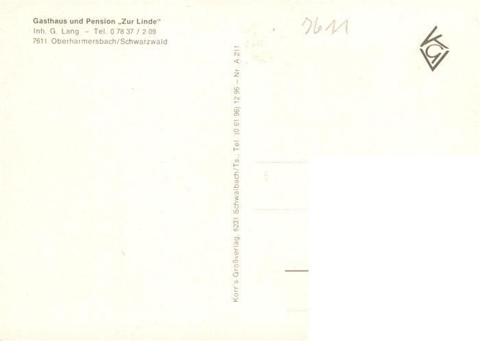 73928046 Oberharmersbach Gasthaus Pension zur Linde Gastraum postalisch nicht gelaufen Erhaltung siehe scans [FriedD77] KatCode: 11110008317088