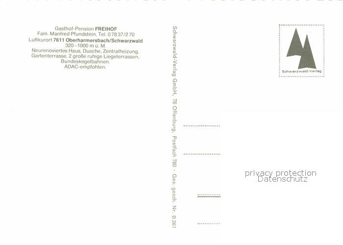 72616548 Oberharmersbach Gasthof Pension Freihof postalisch nicht gelaufen Erhaltung siehe scans [FriedD77] KatCode: 11110008317088