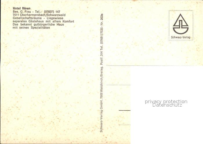 72241913 Oberharmersbach Hotel Baeren postalisch nicht gelaufen Erhaltung siehe scans KatCode: 11110008317088