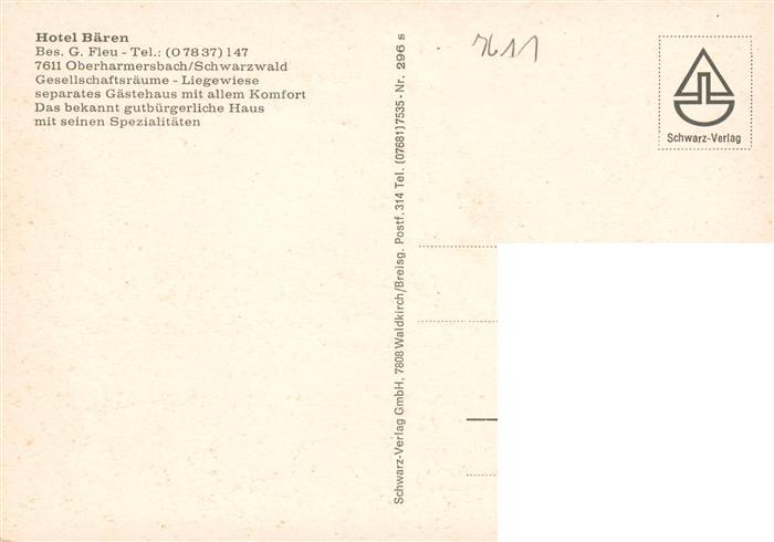73928932 Oberharmersbach Hotel Baeren Liegewiese Kirche postalisch nicht gelaufen Erhaltung siehe scans [FriedD77] KatCode: 11110008317088