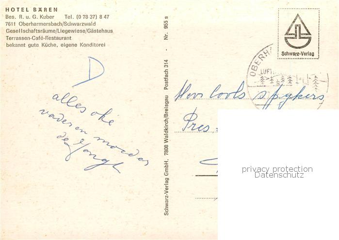 73814071 Oberharmersbach Hotel Baeren Panorama postalisch nicht gelaufen Erhaltung siehe scans [FriedD77] KatCode: 11110008317088
