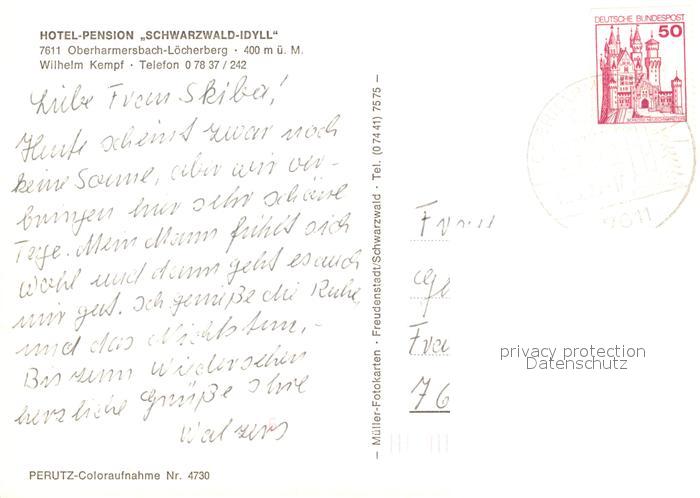 73332210 alte Postkarte Oberharmersbach Hotel Pension Schwarzwald-idyll postalisch gelaufen Erhaltung siehe scans [LiesaD40] KatCode: 11110008317088