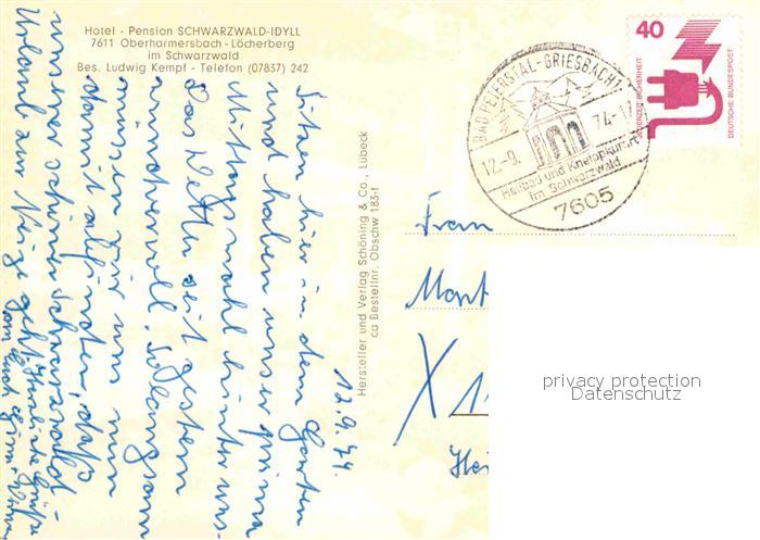72673882 alte Postkarte Oberharmersbach Hotel Schwarzwald Idyll postalisch gelaufen Erhaltung siehe scans [AndreD76] KatCode: 11110008317088