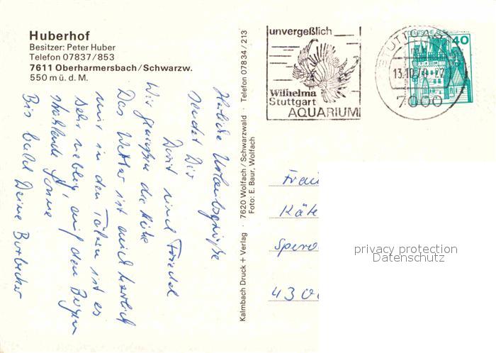 72754023 alte Postkarte Oberharmersbach Huberhof Fliegeraufnahme postalisch gelaufen Erhaltung siehe scans [FriedD77] KatCode: 11110008317088