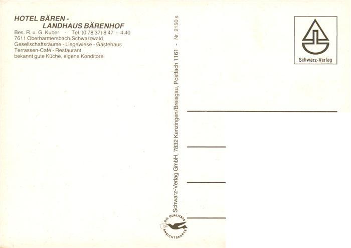 73928428 Oberharmersbach Kutschfahrten Hotel Baeren Landhaus Baerenhof postalisch nicht gelaufen Erhaltung siehe scans [FriedD77] KatCode: 11110008317088