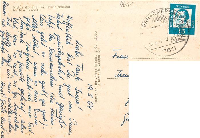 73928525 alte Postkarte Oberharmersbach Michaelskapelle im Harmersbachtal postalisch gelaufen Erhaltung siehe scans [FriedD77] KatCode: 11110008317088