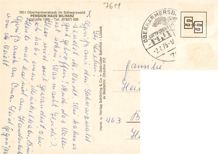73890568 alte Postkarte Oberharmersbach Pension Haus Bilharz postalisch gelaufen Erhaltung siehe scans [FriedD77] KatCode: 11110008317088