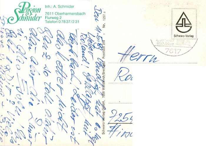 73928498 alte Postkarte Oberharmersbach Pension Schmider Gastraum postalisch gelaufen Erhaltung siehe scans [FriedD77] KatCode: 11110008317088